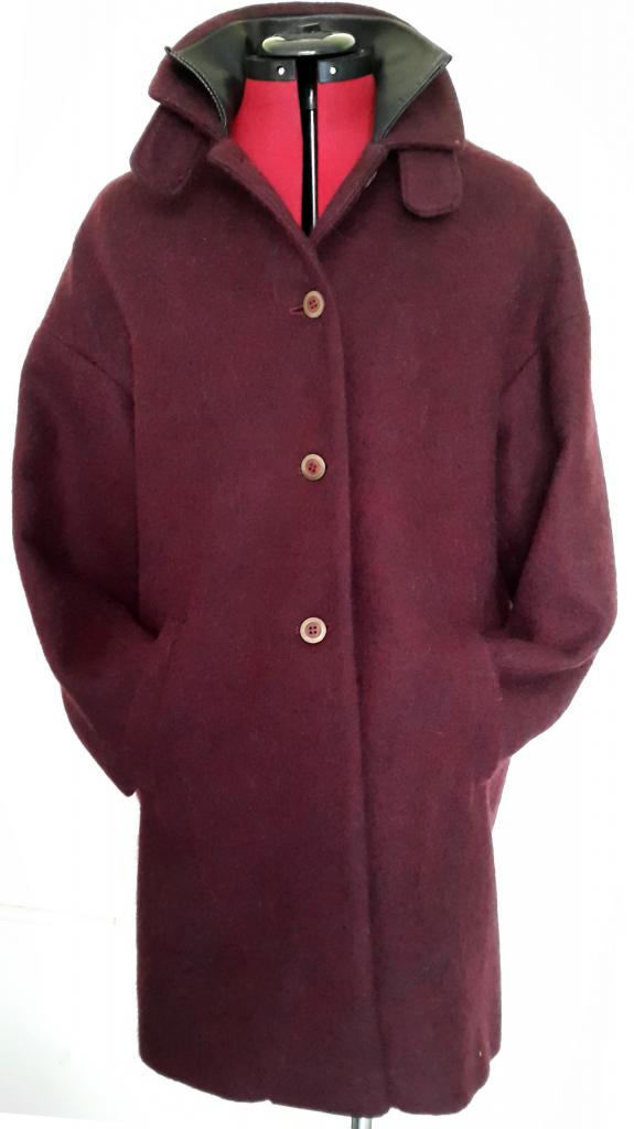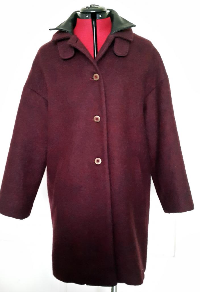 Manteau violine en laine et col cuir -1