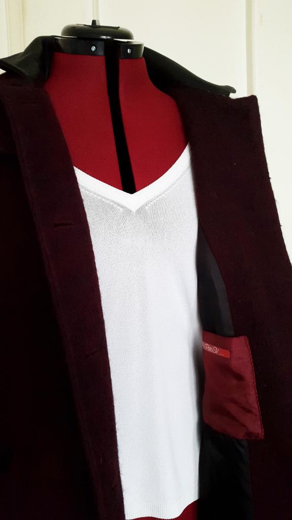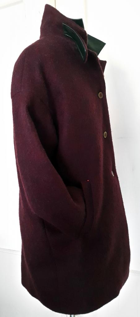 Manteau violine en laine et col cuir -6